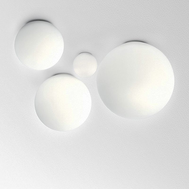 La geometria elementare del diffusore sferico ne fa un prodotto iconico ed aiuta la diffusione uniforme della luce attraverso il vetro soffiato acidato.