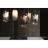Lampada dalla forma elementare che esalta la bellezza del vetro lavorato a mano secondo un’antica tecnica veneziana che rende unico ogni pezzo