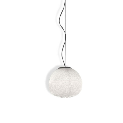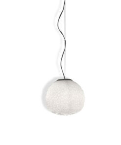 Famiglia di lampade che si articola in quattro tipologie, con diffusore realizzato in vetro artistico a doppio strato, ottenuto con la tecnica artigianale della soffiatura in stampo a fermo e conseguente molatura.
