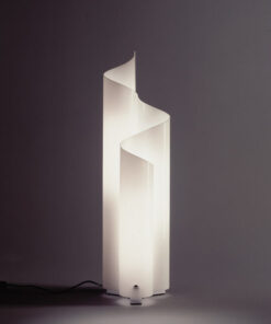 Base in metallo verniciato; struttura/diffusore in metacrilato opalino curvato a caldo.