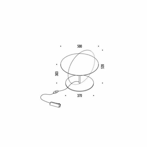 Finitura a specchio orientabile in tutte le direzioni, il retro del disco blu opaco, la base nero opaco e lo stelo in ottone. Dimmer lungo il cavo. Cavo nero.