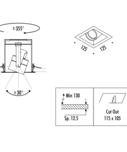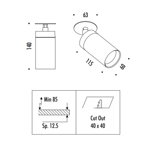 Dimensioni: Spazio minimo per incasso 85mm – Dimensioni taglio cartongesso 40x40mm