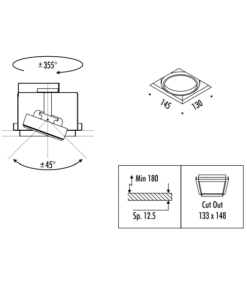 Dimensioni: Spazio minimo per incasso 85mm – Dimensioni taglio cartongesso 40x40mm