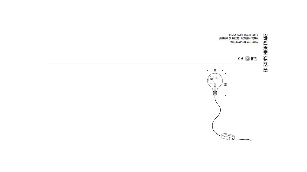 Edison’s Nightmare è un saluto alla lampadina di Edison*, ad un sogno che ha cambiato per sempre il modo di vivere, sottraendo al sonno ore da dedicare a lettura e scrittura. Si tratta di una classica lampadina inchiodata al muro, come un’opera d’arte dal diffusore in vetro soffiato lampadina a incandescenza.