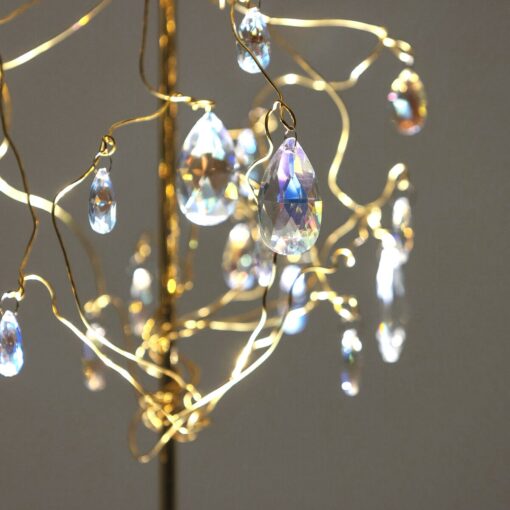 Lampada a sospensione con alimentatore remoto. Un progetto disobbediente, che traduce in luce una certa ribellione ai modelli comuni di fare lampade. Un lampadario a gocce un equilibrio tra leggerezza e ironia. Ottanta gocce in cristallo e un uccellino. Rami in ottone naturale. Lampada a sospensione dimmerabile a doppia emissione.