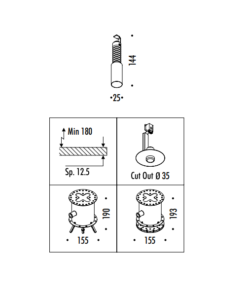 Dimensioni: Foro visibile con Ø 25 mm
