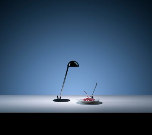 Lampada da tavolo dalla forma di un mestolo che viene ri-utilizzato per raccogliere la luce e servirla al tavolo. Un progetto di molti anni fa, oggi rieditato in versione wireless.