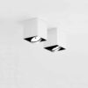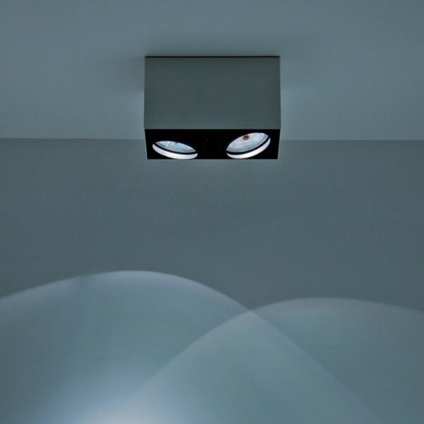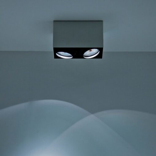 Lampada da soffitto orientabile in tutte le direzioni adatta ad ogni tipo di ambiente interno. Il corpo illuminante è forma pura, semplice contenitore della fonte luminosa. La luce si integra con lo spazio diventando elemento architettonico.