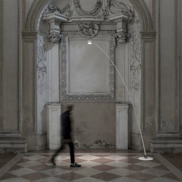 Lampada da terra originale ed elegante dal lungo corpo in metallo, ricavata da una canna da pesca, flessibile e telescopica, è un segno delicato, che fa pensare a effimeri rami di salice, a canne di bambù mosse da un debole vento. Sampei è un regalo inaspettato, è la magia di guardare in alto, usando la luce come amo, e stupirsi di tanta leggerezza. La luce è la lenza del pescatore, pronta per catturare volti, sguardi, persone. Vincitrice del premio Compasso d’Oro nel 2014, premio Elle Deco International Design Award 2011. Disponibile in 4 altezze differenti 230 260 290 e anche nella versione 440 outdoor.