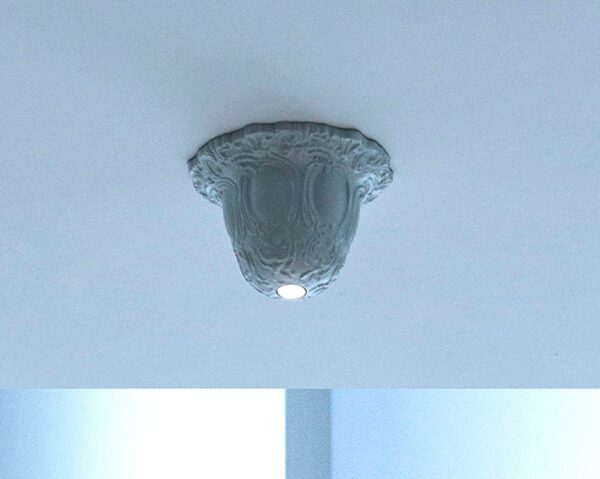 Lampada da soffitto LED un progetto sull’assenza, su qualcosa che manca: “dov’è finito il lampadario?”. Come se togliendo il lampadario, rimanga la sua memoria, ma con una luce moderna e sensuale.