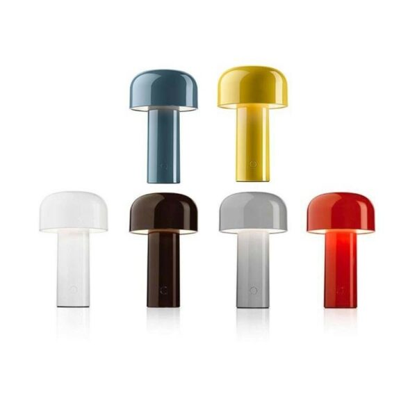 Lampada da tavolo ricaricabile a luce diretta. Base e cupola in PC colorato. Diffusore in PC opalino fotoinciso stampato ad iniezione. Autonomia fino a max 24h e ricarica tramite Micro-USB-C. Interruttore a pulsante posizionato sulla base che garantisce la funzione dimmer 4step. Indicatore stato batteria posizionato sotto la base. Cavo ricarica USB-C incluso nellimballo, lunghezza utile 120cm.