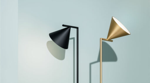 Lampada da terra a luce diretta direzionabile, asta e cono in acciaio verniciato o ottone spazzolato