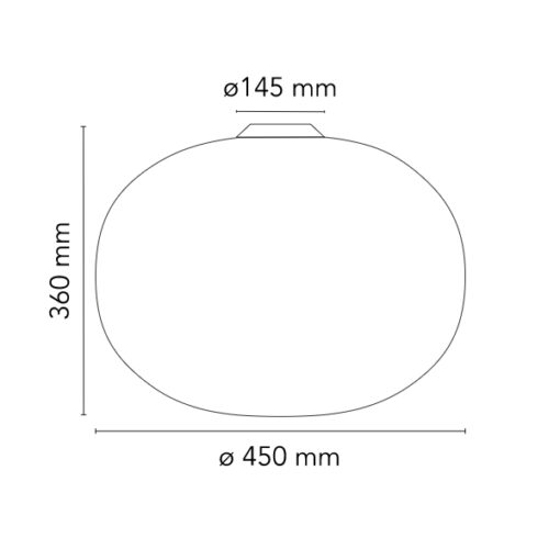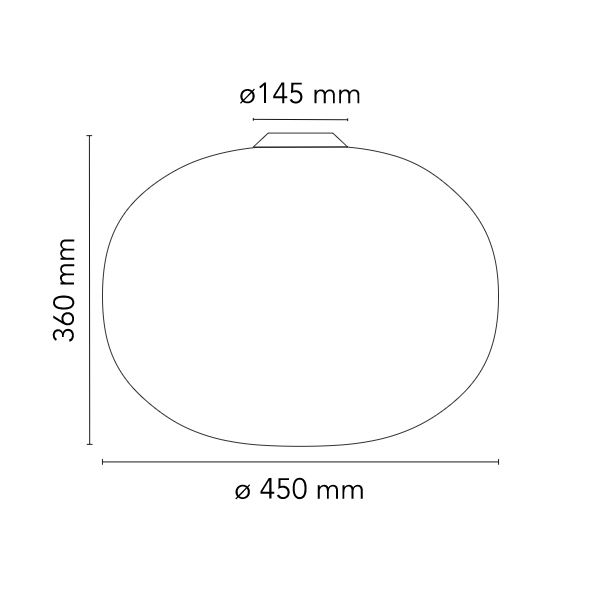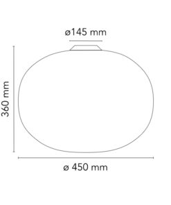 Lampada da soffitto a luce diffusa. Diffusore composto da un vetro opalino incamiciato, soffiato a bocca, acidato esternamente e da una ghiera filettata in alluminio pressofuso con finitura alodina. Attacco a soffitto in poliammide stampato ad iniezione rinforzato con fibra di vetro al 30%; supporto diffusore in alluminio pressofuso verniciato grigio.