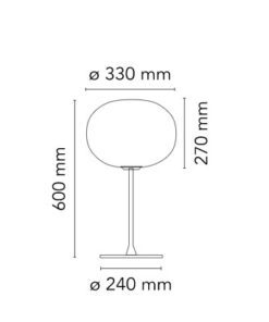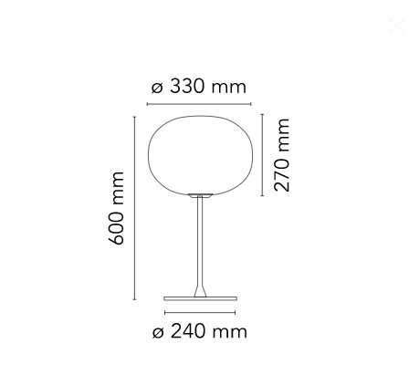 Lampada da tavolo a luce diffusa. Diffusore composto da un vetro opalino incamiciato, soffiato a bocca, con finitura esterna acidata e da una ghiera filettata in lega di alluminio pressofusa, con finitura galvanica, “cromatazione alodine”. Base di acciaio ad alto spessore, stelo in tubolare d’acciaio e supporto diffusore in lega di alluminio pressofuso, tutti verniciati di colore grigio a liquido. Sul cavo è presente il dimmer elettronico che consente la regolazione a step dell’intensità luminosa.