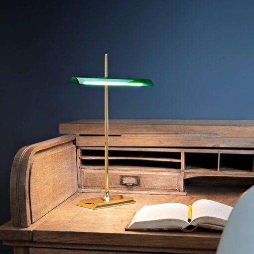 “La ‘banker’s lamp’ è uno dei primi esempi di lampada elettrica, inventata ai primi dell’Ottocento. Con una base in solido ottone e un paralume in vetro verde, fu pensata come lampada decorativa o da lavoro, per illuminare le scrivanie degli impiegati di banca che passavano ore e ore chini su fogli di numeri scritti in calligrafia minuta. Questa luce supplementare rendeva il loro lavoro un po’ più semplice. ‘Goldman’, che evoca il nome di una celebre banca d’affari, segna un passaggio evolutivo nelle tradizionali banker’s lamp, un’iniezione di alta tecnologia in un gioco di linee sottili ed eleganti”.