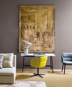 Apparecchio di illuminazione da parete/soffitto a luce diffusa. Telaio in ottone, spazzolato e verniciato trasparente o acciaio cromato. Diffusore opalino di vetro soffiato.