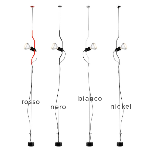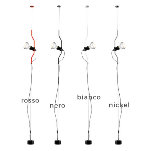 Parentesi è stata disegnata e concepita per Flos nel 1971, da Achille Castiglioni e Pio Manzu, vincitori del prestigioso premio Compasso d’Oro nel 1979. La geniale versatilità di questa lampada è unica nel suo genere, da terra ma sospesa, con un ingegnoso sistema di orientamento, grazie alla tensione generata da un semplice tubolare in metallo, può essere posizionata in numerosi ambienti: può essere utilizzata come lampada da lettura o rivolta verso la parete per creare una luce indiretta e diffusa, nel soggiorno-living o in camera vicino al comodino. Nella versione con dimmer è possibile regolare l’intensità della luce, tramite dimmer posizionato sul cavo della lampada.