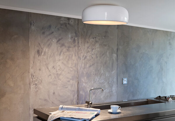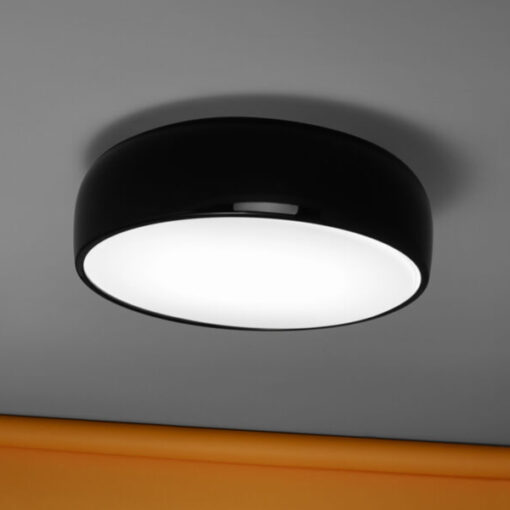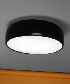 Lampada da soffitto con luce diretta.Corpo in alluminio.Diffusore stampato a iniezione in metacrilato opalino.Attacco a parete e soffitto in acciaio