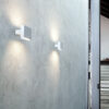 Apparecchio a sospensione a luce diretta e riflessa. Struttura formata da 20 triangoli stampati in alluminio lucidato. Rosone e in acciaio.