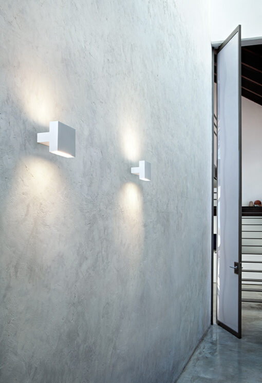 Lampada da parete a luce diretta / indiretta. Corpo in alluminio estruso verniciato. Fregi laterali in alluminio pressofuso ruotati fino a 45º su controllo digitale per un perfetto accoppiamento con il corpo della lampada. Centralina multi-tensione integrata nel corpo