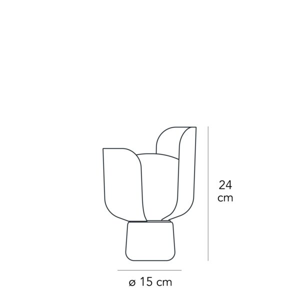 Lampada da tavolo dotata di pale simili a petali che ricorda appunto la forna di un fiore da cui prende il nome. La quantità di luce è regolabile grazie ai due petali che avvolgono dolcemente il diffusore e che ruotando sulla base, consentono di schermare il flusso luminoso, personalizzandolo a seconda delle esigenze.