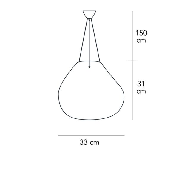 Lampada a sospensione dal diffusore in vetro soffiato trasparente dall’effetto iridiscente e dalla forma che ricorda le bolle di sapone. È disponibile in due forme.