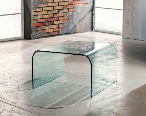 Tavolino in vetro firmato da Pietro Chiesa, rappresenta per l’epoca un pezzo straordinario per essenzialità ed eleganza. È un tavolino ricavato dalla doppia curvatura di una unica lastra di vetro dello spessore di 15 mm. Disponibile in 3 dimensioni. Tavolo basso in vetro float, curvato e molato.
