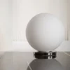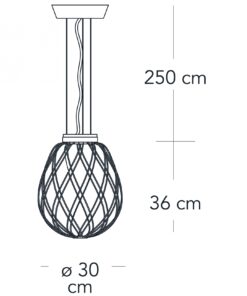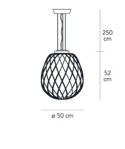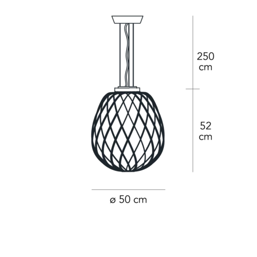 Lampada a sospensione caratterizzata da un diffusore prodotto mediante l’antica tecnica del vetro soffiato ingabbiato: il maestro vetraio soffia a bocca la bolla vitrea entro una gabbia metallica, che ne contiene la naturale espansione solo in parte. In questo modo il manufatto finale viene in parte trattenuto dalla gabbia e in parte vi sfugge, creando un gioco di tensione che genera un oggetto sospeso nell’atto di fuoriuscire dal proprio vincolo; la gabbia viene ulteriormente impreziosita da un trattamento galvanico che ne esalta l’aspetto rendendola lucida e brillante. La versione trasparente, in particolare, permette all’osservatore di leggere un doppio livello di struttura, moltiplicando l’effetto scenografico, e l’intreccio del cesto metallico proietta sulle superfici circostanti un caleidoscopico gioco d’ombre. Al contrario, la versione bianca segue delicatamente la gabbia e ne sottolinea le geometrie generando una luce diffusa elegante e piacevole. Si tratta di un apparecchio luminoso altamente suggestivo e di forte impatto sia da spento che da acceso. Lampada a sospensione a luce diffusa dimmerabile, con diffusore in vetro soffiato opalino acidato ingabbiato o trasparente, gabbia e base in metallo galvanizzato. Cavi di sospensione in acciaio. Cavo di alimentazione trasparente.