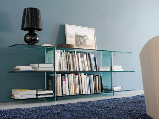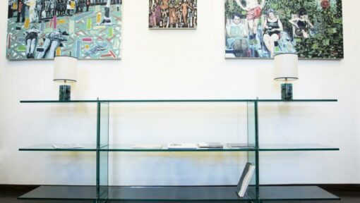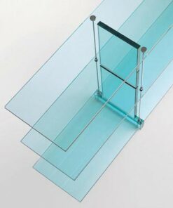 Consolle in vetro firmata Renzo Piano che, si misura per la prima volta con il campo del design progettando per FontanaArte una produzione coordinata di sistemi d’arredo in un unico materiale: il vetro, simbolo della storia produttiva dell’azienda. Una collezione di grandissimo pregio, composta da tavolo, libreria e consolle.