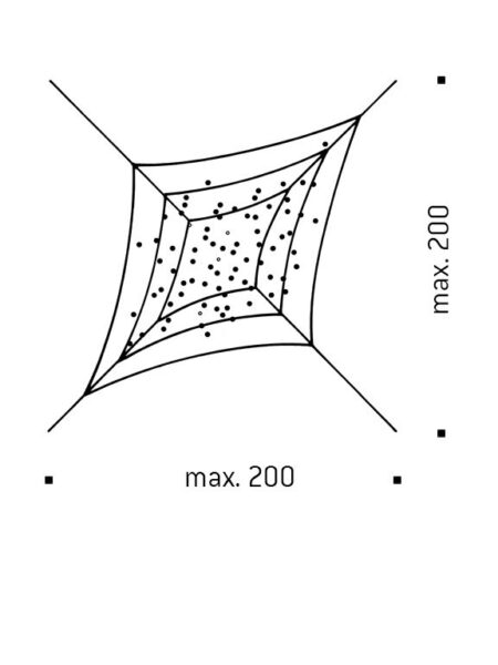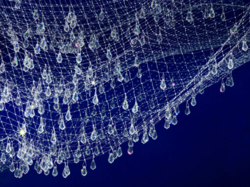 Lacrime del Pescatore di Ingo Maurer è un oggetto luminoso composto da tre reti in nylon con cristalli in vetro. Se installata in una posizione strategica, Lacrime del Pescatore brilla anche di giorno alla luce del sole. Unendo più esemplari alla volta è possibile creare con un dispendio relativo un oggetto luminoso poetico e molto suggestivo. Lacrime del Pescatore è un omaggio al villaggio di pescatori sul lago di Costanza dove Ingo Maurer è cresciuto: questo poetico oggetto luminoso ricorda una rete da pesca che viene appena tirata fuori dall’acqua e in cui le pentole d’acqua sono ancora appese, scintillando al sole.