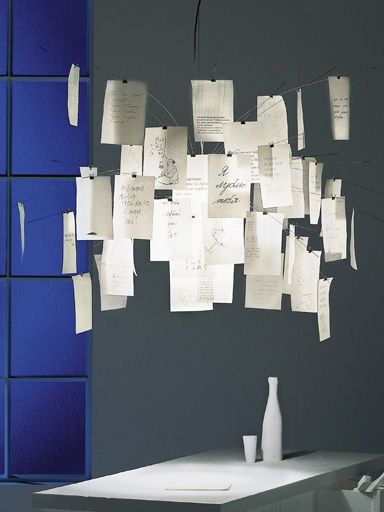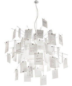 Zettel’z 5, una delle lampade più conosciute di Ingo Maurer, che invita l’utente a usare la propria creatività. I fogli possono essere disposti a piacere. I fogli bianchi in dotazione possono essere usati per schizzi o messaggi personali. Zettel’z 5 viene fornita con 31 foglietti prestampati e 49 foglietti bianchi delle dimensioni DIN A5. La carta giapponese è molto sottile e traslucente. Prendetevi tempo sufficiente per la disposizione delle aste e la selezione dei foglietti! Una bella Zettel’z richiede tempo e la vostra creatività! Un set di foglietti di 80 foglietti è disponibile su ordinazione e può essere usato per creare versioni uniche e personalizzate.