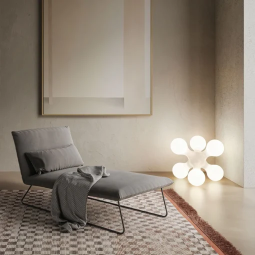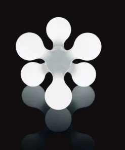 Lampada da tavolo o da terra, reinterpretazione luminosa della storica architettura simbolo di Bruxelles, realizzata per l’Esposizione Universale del 1958. Lampada versatile e dall’utilizzo ibrido, con le sue dimensioni importanti si posiziona liberamente sul tavolo o anche a terra, emanando una luce multidirezionale e soffusa.