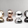 Materiale: Lamine: ottone taglio laser, rame, acciaio inossidabile o acciaio. Schermo superiore: bianco o nero, acciaio tirato, bianco sulla parte inferiore. Telaio: cromato lucido, acciaio taglio laser. Sospensione: cromato lucido placcato, alluminio tirato.