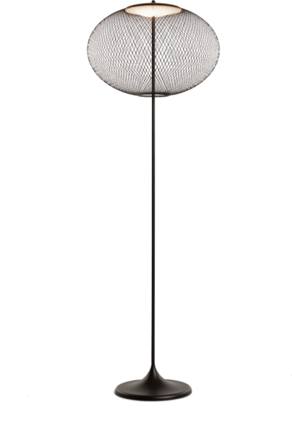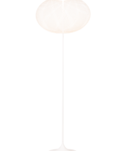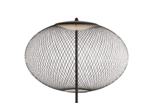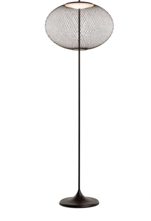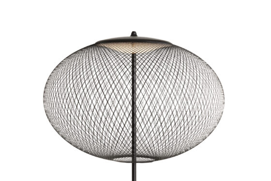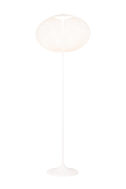Come i suoi membri della famiglia sospesi, la lampada da terra NR2, di Bertjan Pot, sfoggia un’elegante e luminosa bolla ovale di filo bianco o nero.