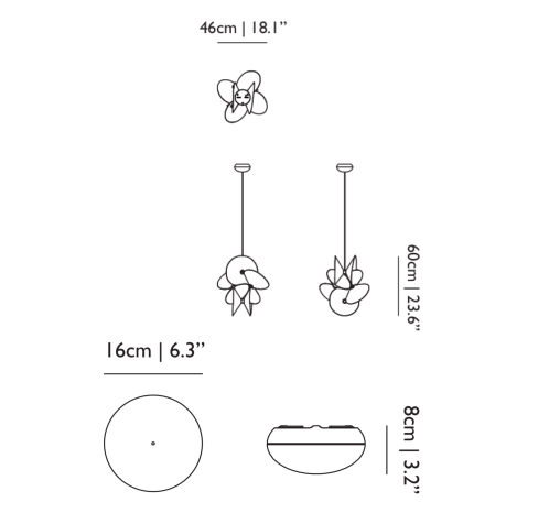 Materiali:Paralume in PES non tessuto stampato, pendente in acciaio verniciato