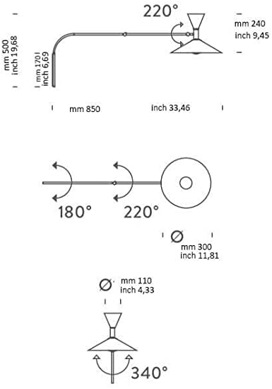 Installazione a muro con o senza spina: lunghezza del cavo 40 cm +120 cm.