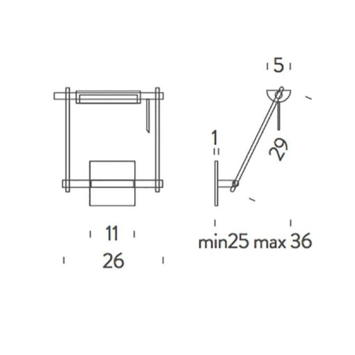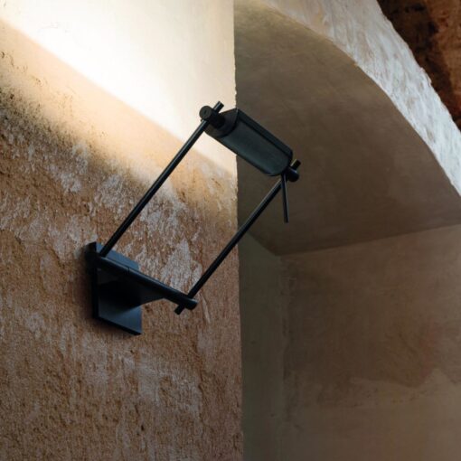 Lampada a parete dall’estetica semplice e rigorosa, rappresentato da due sottili steli in alluminio e da un diffusore orientabile per direzionare la luce a seconda delle esigenze,