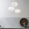 Materiali: Cromo / vetro bianco opalino – Dimensioni: 32x32x33cm