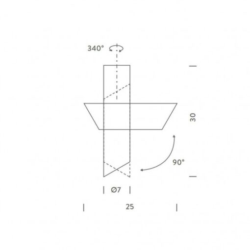 Nella versione a soffitto l’elemento a plafone ruota di 340°, mentre l’altro cilindro è orientabile di 90°.
