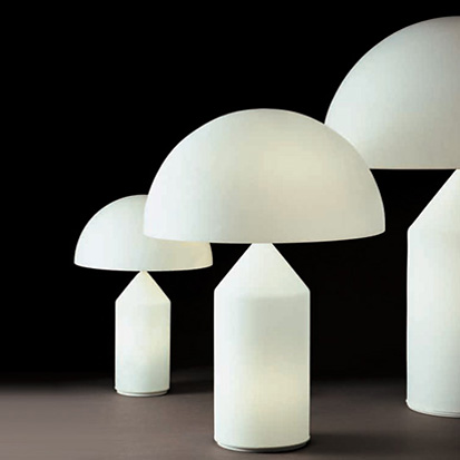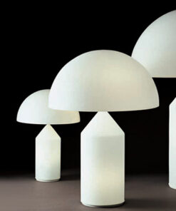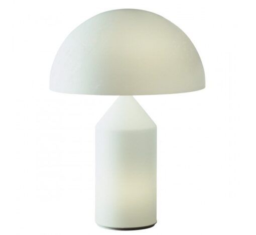 Atollo famosa lampada da tavolo del brand Oluce, in vetro soffiato opale bianco altezza 50 cm