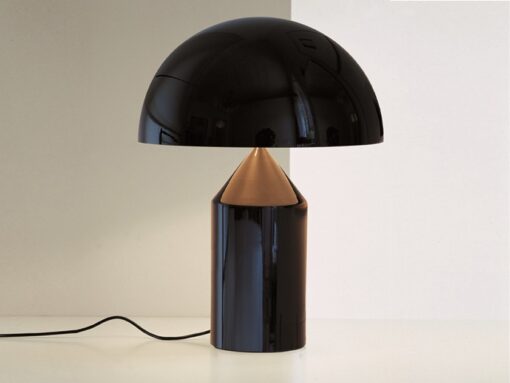 Atollo di Oluce è diventata negli anni l’archetipo della lampada da tavolo, vincendo il Compasso d’Oro nel 1979. Rivoluzionando completamente il modo di immaginare il classico abat-jour. Le forme geometriche che la compongono – il cilindro, il cono e la semisfera – hanno dato vita ad un prodotto decorativo ed essenziale allo stesso tempo. Slegato dal periodo storico dalle mode del momento e divenuto ormai a pieno titolo una delle icone del design italiano. Atollo è disponibile in tre dimensioni differenti e nelle diverse finiture oro, nero, bronzo.