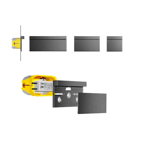 La versatilità è senza dubbio la caratteristica principale di 5cento, un segnapasso estremamente compatto e sottile, installabile su pareti in cartongesso o muratura. In particolare, 5cento può essere fissato alla comune scatola di derivazione elettrica (da cui il nome cinquecento) o può anche essere installato in superficie; nel primo caso l’alimentatore può essere ospitato direttamente all’interno della scatola. 5cento sporge solo 22mm dalla parete e si presenta totalmente privo di viti a vista: una placchetta magnetica si sovrappone elegantemente al corpo illuminante, nascondendo totalmente viti e asole di ancoraggio.