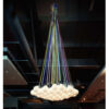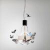 apparecchio a sospensione con struttura in acciaio verniciato brunito ottone,totalwhite o totalblack, finiture galvaniche brunito scuro-matt, ottonato brunito spazzolato-matt, ramato brunito spazzolato-matt, con speciale cavo elettrico rivestito in tessuto.
