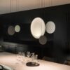 Lampada a sospensione dai volumi piatti e di diverse misure che creano un’illusione ottica di sfere in sospensione, creando una sensazione di galleggiamento nell’aria, una creazione di Lievore Altherr Molina. Cosmos, realizzate in diverse finiture: laccato marrone scuro opaco, verde opaco, grigio chiaro opaco e bianco opaco, e, dove l’uso della tecnologia LED è impercettibile grazie alla totale integrazione all’interno di ogni sfera che usa la luce per disegnare un’atmosfera fluttuante “come una costellazione di stelle”.
