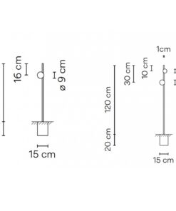 4785: due sfere H. 120 cm: 2 x LED 1 W 350 mA – 2700 K CRI >90 190,9 lm – ON/OFF