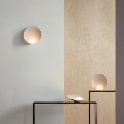 Lampada a parete, creata da Note Design Studio, dalle caratteristiche organiche, capace di attirare lo sguardo grazie alla sua natura di oggetto di luce. Un design delicato ed elegante, che crea un’interazione tra la luminescenza emessa dalla piccola sfera di vetro soffiato traslucido e quella riflessa dal piatto che la accoglie. Musa esplora la delicatezza della natura che è allo stesso tempo forte e potente in un’espressione poetica di luce.