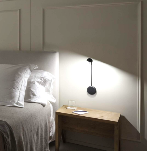 Lampada a parete, una proposta del designer giapponese Ichiro Iwasaki. Caratterizzata da un design delicato e leggero, funzionale e minimalista e, al contempo, classico e contemporaneo. Si tratta di una collezione di applique particolare che fornisce sia un’illuminazione d’ambiente, indiretta, sia da lettura, che può essere installata in stanze da letto, come sostegno alla lettura, o in zone di passaggio utilizzandone varie per creare una composizione di luce indiretta, come se si trattasse di un murale.