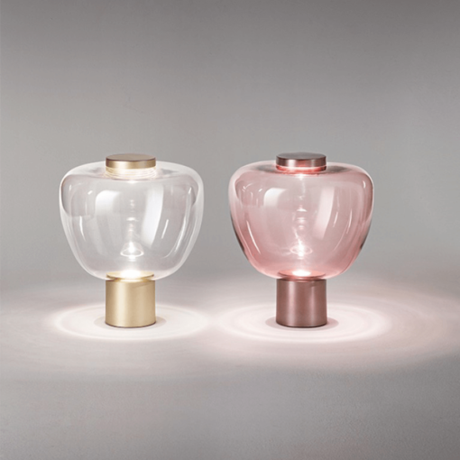 La collezione Riflesso ricorda bolle di sapone e ricordi d’infanzia. La sorgente luminosa LED ne esalta la silhouette, e attraversa una bolla di vetro per rifrangersi su uno specchio in un gioco di continui rimbalzi. Il vetro non è solo diffusore bensì tramite, quasi invisibile, tra la fonte di luce e l’elemento riflettente, caratterizzando l’ambiente con eleganza.